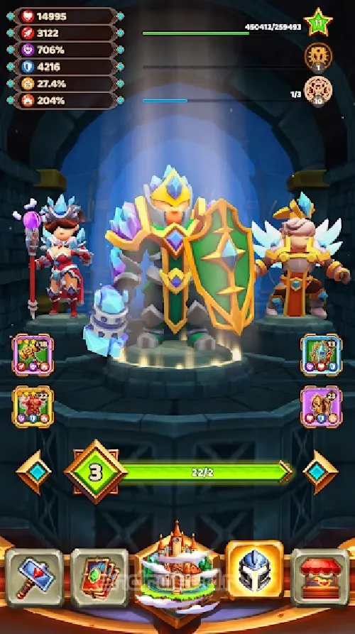 收集传奇装备,寻找专属卡牌,获得最佳增强道具以升级您的英雄,并利用他的无敌力量获胜。